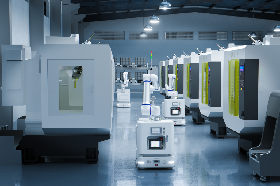 在傳統CNC加工環節,人力依賴度高、高強度連續作業難度大、物料調度效率有限,已成為制約產線整體效能的關鍵因素。艾利特-邁幸復合機器人融合AMR自主移動機器人及高精度機械臂,可以實現從料倉至機臺、再到上下料工位的全程無人化物流與精準定位。