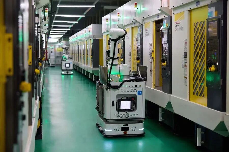 近日,《21世紀經濟報道》發布報道《蘋果高管再訪中國 實探iPhone 17產線》(記者:倪雨晴),在業內引發廣泛關注。報道中展示了藍思精密泰州工廠高度自動化的生產現場,其中正在執行CNC上下料任務的復合機器人,正是由我司(艾利特-邁幸機器人)所提供的解決方案及技術支持。