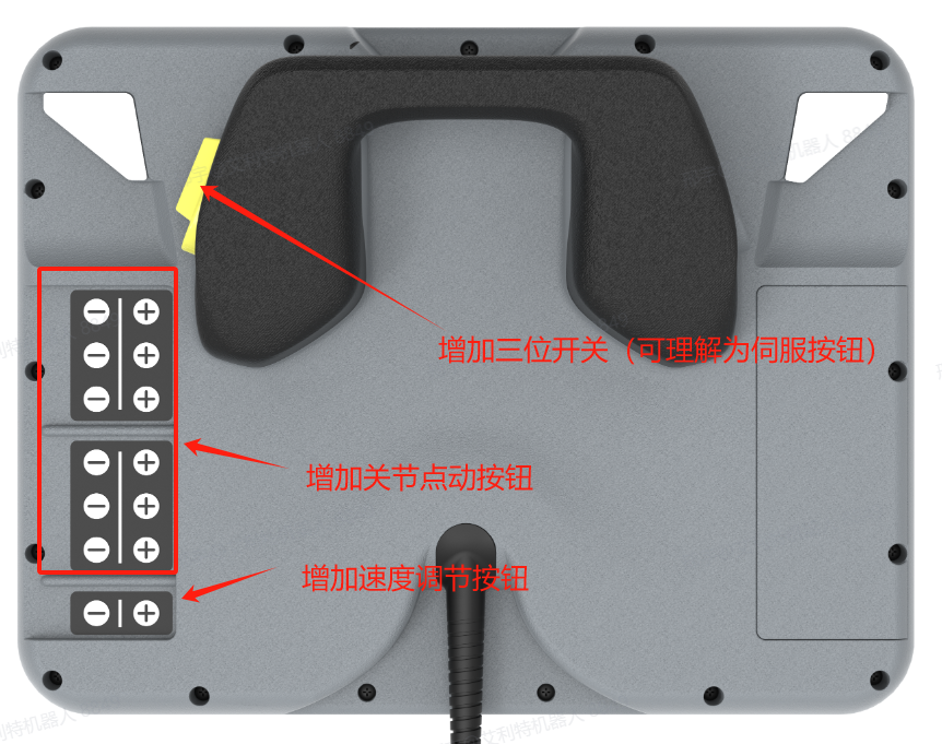 三位開(kāi)關(guān)示教器:要先按住三位開(kāi)關(guān)后方可操作機(jī)器人。