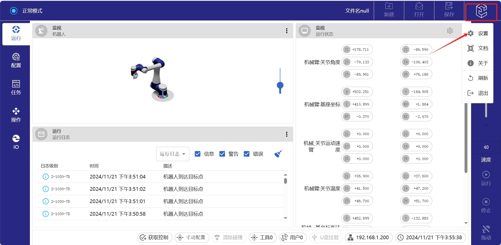 打開瀏覽器輸入 http://192.168.1.200:6680/,(192.168.1.200根據當前機器人IP進行替換)
