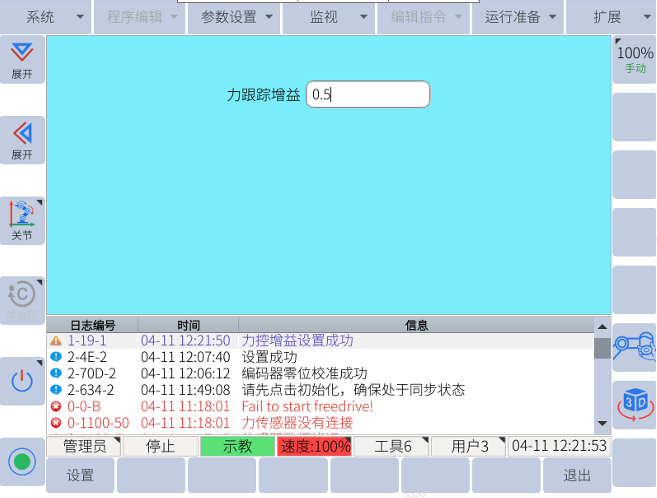 擴展-力控模式配置-力控參數(shù)-輸入?yún)?shù)-點擊設置。