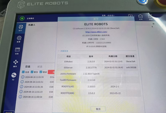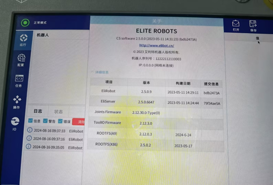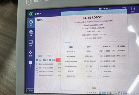 除了X86系統(tǒng)直接對應(yīng)的ROOTFS(X)發(fā)生了改變,RT ROBOT和RT SERVER也被刷新了。理論上,升級x86,會影響java所有的程序,包括上位機(jī)軟件版本,本地安裝的插件,保存的任務(wù)配置文件等。早期的x86版本中,沒有完整的應(yīng)用升級包,所以升級完x86,只有上位機(jī)版本(EliRobot新版本里叫RT ROBOT)會改變,下位機(jī)版本還是升級之前的版本。后續(xù)新版本的X86,包含了完整的應(yīng)用升級包,所以新版本x86升級完后,EliRobot和EliServer版本都會改變