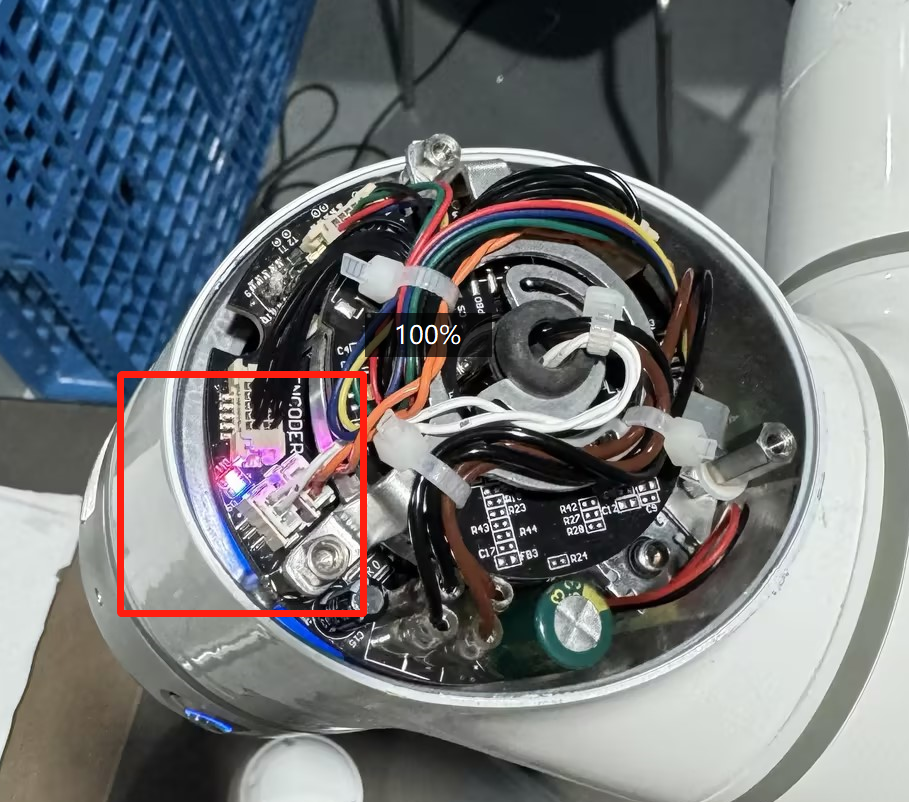 機器人軸報警 121,無法消除報警,打開,端蓋可發現故障軸紅藍燈異常