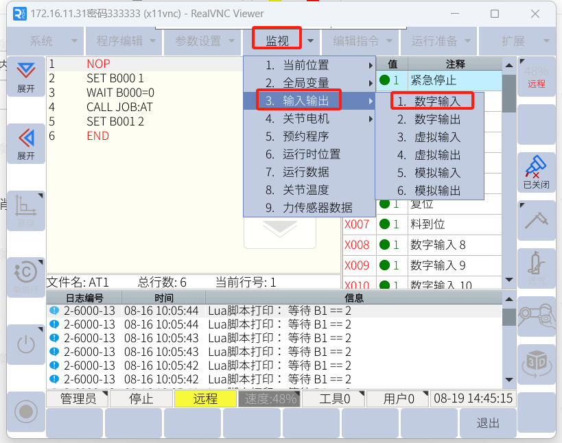 打開(kāi)機(jī)器人監(jiān)視-輸入輸出-數(shù)字輸入
