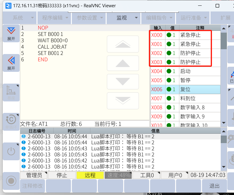 示教器上帶有兩路急停信號(hào),如果需要拔掉示教器。先要在示教器上將示教器關(guān)閉。