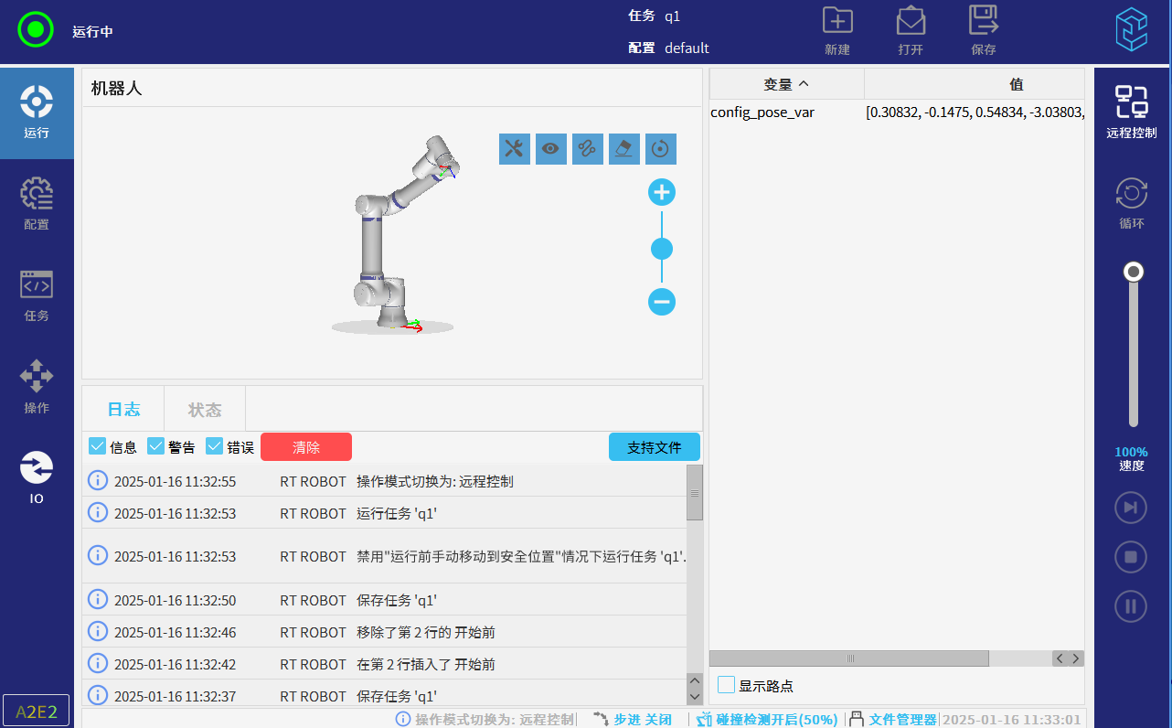 29999端口還可以打開或切換不同的任務和配置,具體使用指令可查詢EliRobot Dashboard手冊,手冊下載可至官網或咨詢艾利特技術人員技術資料_機器人技術-艾利特機器人