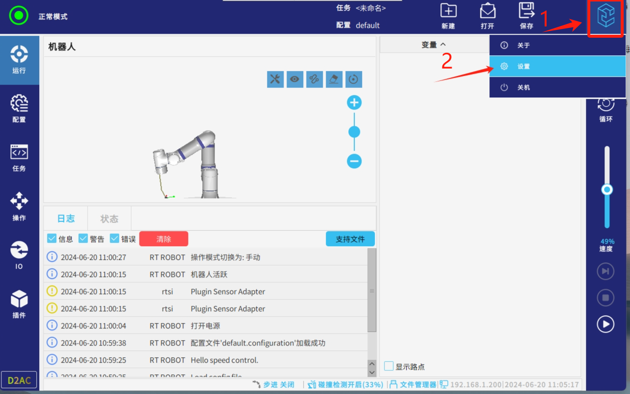 1. 點擊示教器屏幕左側底部插件按鈕,再點擊寄存器監視器進入插件界面;
