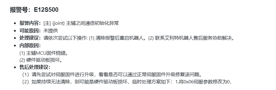 1. E12S500:伺服報警,[主]肩部 主輔之間通信初始化異常