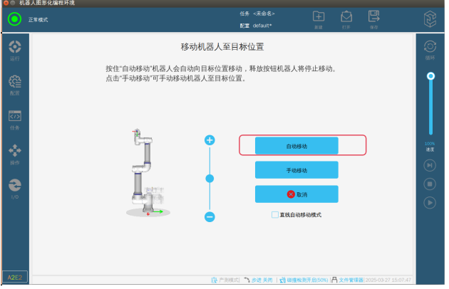 2.1在產(chǎn)測(cè)模式下將機(jī)器人移至打包位姿態(tài)(以肘關(guān)節(jié)伺服損壞為例)