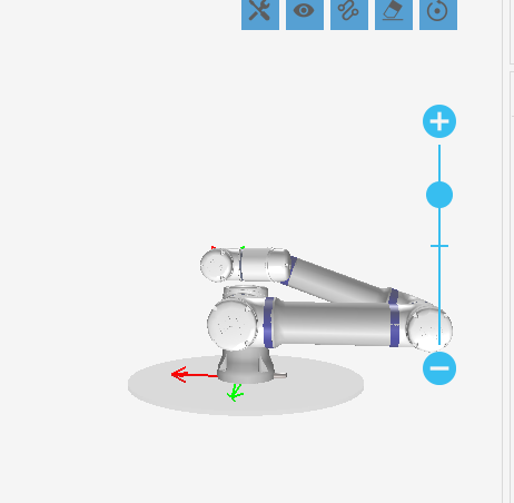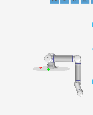 第四步:一直按著自由移動(dòng)按鈕,如圖-4紅框所示,機(jī)器人無(wú)故障的軸就會(huì)回到打包姿態(tài),有故障的軸不會(huì)運(yùn)動(dòng)。(需要注意的是因?yàn)闄C(jī)器人其中一個(gè)軸或多個(gè)軸有故障時(shí),有故障的軸是不會(huì)運(yùn)動(dòng)的,所以在移至打包位時(shí)將機(jī)器人放在空間比較開(kāi)闊的地方操作且運(yùn)行速度要慢,防止機(jī)器人在運(yùn)動(dòng)過(guò)程中碰撞到其他障礙物或者機(jī)器人關(guān)節(jié)相互碰撞)以機(jī)器人肘關(guān)節(jié)有故障為例,機(jī)器人運(yùn)行到打包位時(shí)肘關(guān)節(jié)是不會(huì)運(yùn)動(dòng)的,如圖-5所示姿態(tài)就是肘關(guān)節(jié)在-90度時(shí)運(yùn)到到打包位的姿態(tài),圖-6就是機(jī)器人正確的打包位姿態(tài)。通過(guò)圖5與圖6對(duì)比可以發(fā) 現(xiàn),機(jī)器人肘關(guān)節(jié)也就是三軸需要逆時(shí)針旋轉(zhuǎn)270度才能回到正常打包位。
